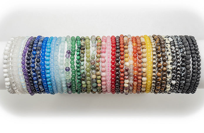 Stacking multiple bracelets at a time not only adds a unique color scheme to your day, but it provides layers of different energy that work together as well.